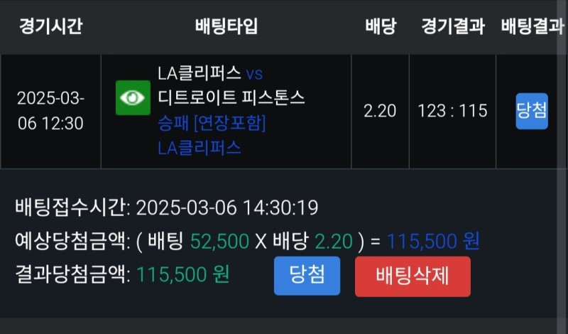 디트승 갔었는데 경기를 보니까 매일 똥싸던 하든이 오늘 회광반조 하고 디트 상태가 안좋길래 실시간 클리퍼스 승 배팅