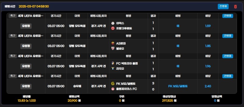 메인벳후기-유로파의신 유로파 13배 올킬 ㅅㅅㅅㅅㅅ 작성자 정보 관광징어쪽지보내기 자기소개 닉네임으로 검색쪽지보내기 자기소개 닉네임으로 검색 작성 작성일 2025.03.07 06:18 컨텐츠 정보 936 조회 2 댓글 0 추천 목록 관리 글검색 본문 끄어억 잘먹고갑니다 0 추천 관련자료 이전 멤피스후기 - 멤피스 MLB시범경기 배당 개꿀이네요 작성일 2025.03.18 07:32 다음 메인벳후기-메이저리그시범경기 3연패 작성일 2025.02.24 06:51 댓글 2 기커조님의 댓글 기커조쪽지보내기 자기소개 닉네임으로 검색쪽지보내기 자기소개 닉네임으로 검색 작성일 2025.03.07 10:22 축하드립니다 축하드립니다 마당발님의 댓글 마당발쪽지보내기 자기소개 닉네임으로 검색쪽지보내기 자기소개 닉네임으로 검색 작성일 2025.03.07 23:26 ㅊㅋㅊㅋ ㅊㅋㅊㅋ 로그인한 회원만 댓글 등록이 가능합니다. 목록 관리 글검색