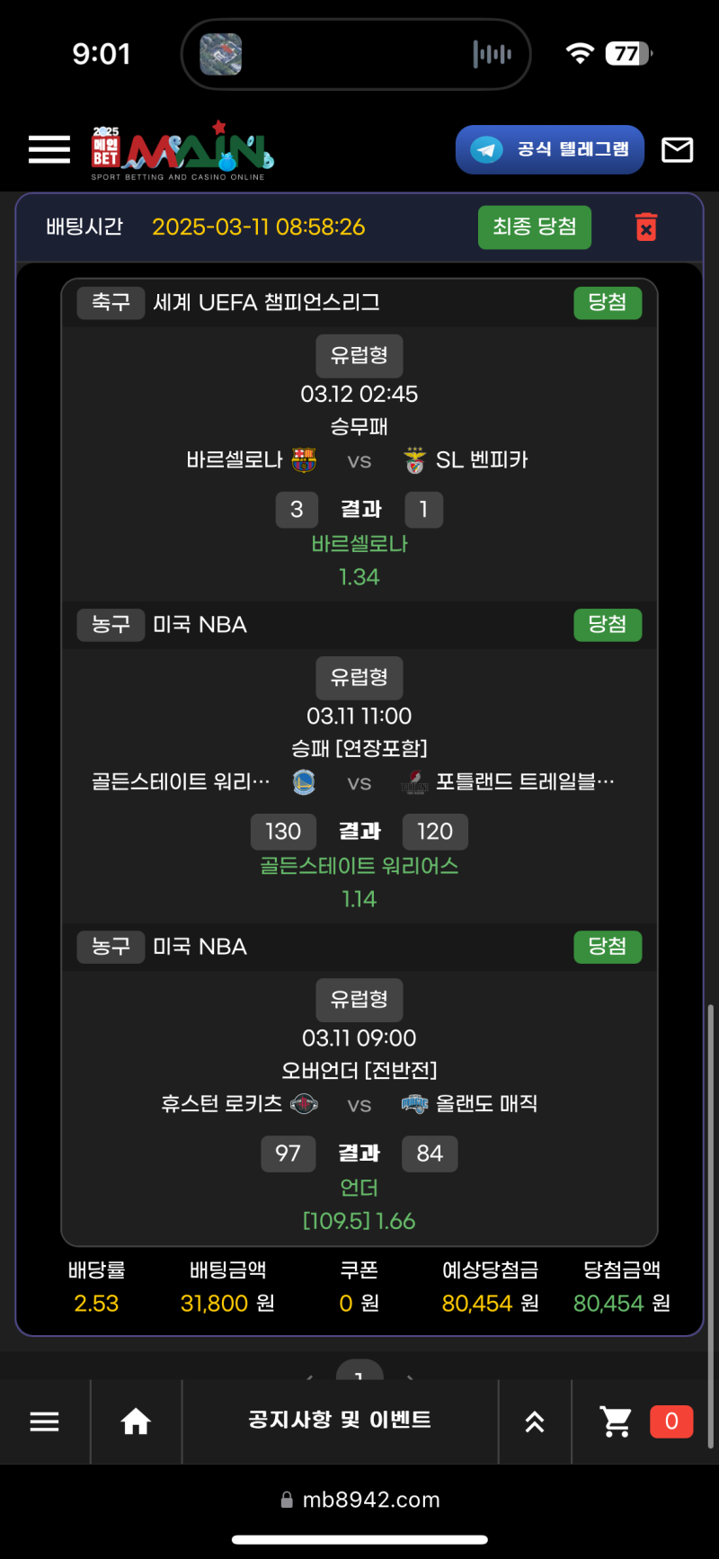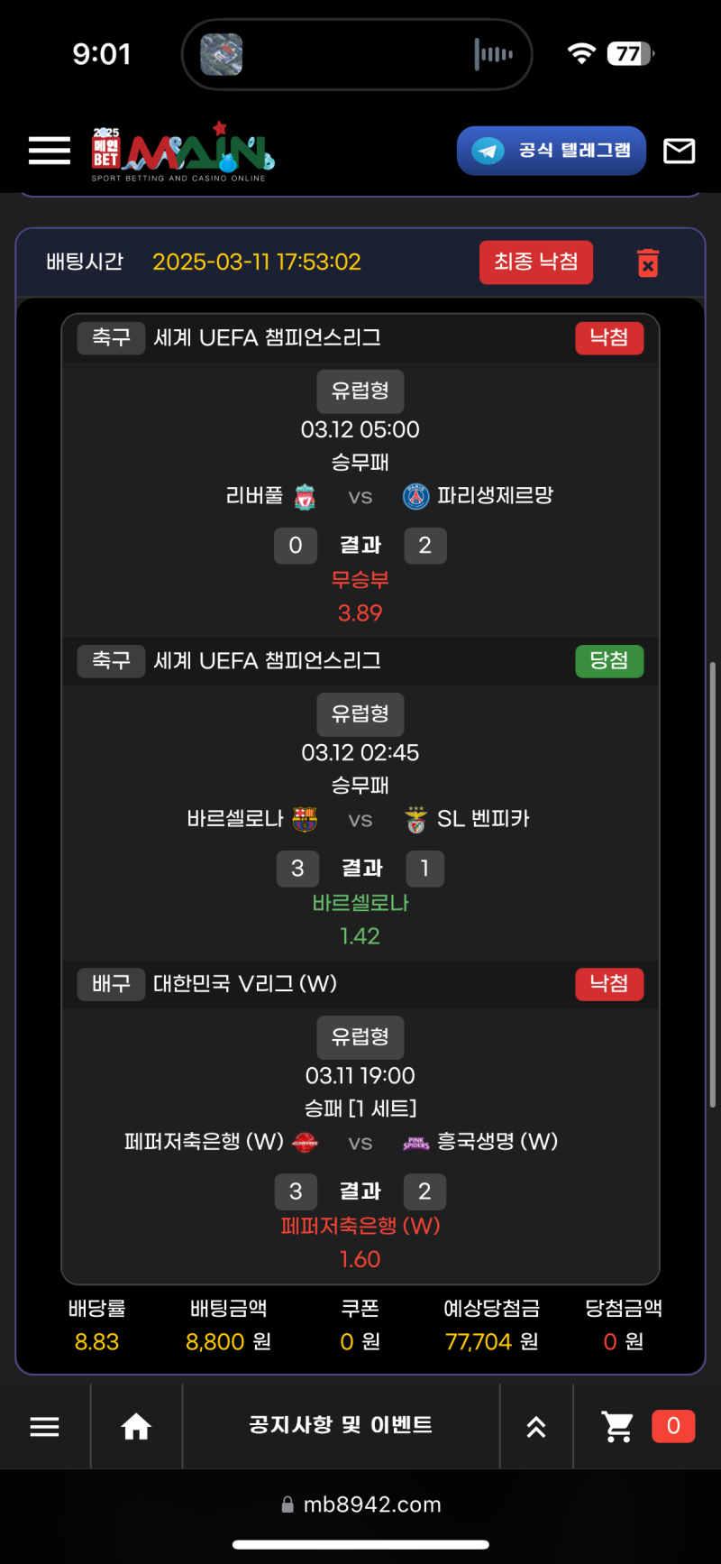 메인벳 ) 선픽후기 작성자 정보 느바학개론쪽지보내기 자기소개 닉네임으로 검색쪽지보내기 자기소개 닉네임으로 검색 작성 작성일 2025.03.12 09:01 컨텐츠 정보 926 조회 2 댓글 0 추천 목록 관리 글검색 본문 1승적립 0 추천 관련자료 이전 벳아이 ) 선픽후기 작성일 2025.03.12 09:02 다음 풀빠따 ) 스포츠후기 작성일 2025.03.10 11:36 댓글 2 기커조님의 댓글 기커조쪽지보내기 자기소개 닉네임으로 검색쪽지보내기 자기소개 닉네임으로 검색 작성일 2025.03.12 10:44 1승축하요 1승축하요 마당발님의 댓글 마당발쪽지보내기 자기소개 닉네임으로 검색쪽지보내기 자기소개 닉네임으로 검색 작성일 2025.03.12 21:40 ㅊㅋㅊㅋ ㅊㅋㅊㅋ 로그인한 회원만 댓글 등록이 가능합니다. 목록 관리 글검색