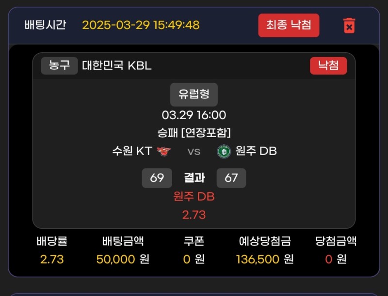메인벳 원주디비vs수원kt 후기 작성자 정보 마당발쪽지보내기 자기소개 닉네임으로 검색쪽지보내기 자기소개 닉네임으로 검색 작성 작성일 2025.03.29 20:08 컨텐츠 정보 855 조회 1 댓글 0 추천 목록 관리 글검색 본문 오늘은 디비가 이길 것 같아서 갔는데 kt 수비에 아주 질식하면서 끌려다님 점수차는 2점차로 졌지만 경기력 차이 심했다 용병도 한명 밖에 없었는데 0 추천 관련자료 이전 메인벳 모비스vs소노 후기 작성일 2025.03.29 20:10 다음 메인벳 두산vs삼성 후기 작성일 2025.03.28 23:17 댓글 1 기커조님의 댓글 기커조쪽지보내기 자기소개 닉네임으로 검색쪽지보내기 자기소개 닉네임으로 검색 작성일 2025.03.29 21:30 까비요 까비요 로그인한 회원만 댓글 등록이 가능합니다. 목록 관리 글검색
