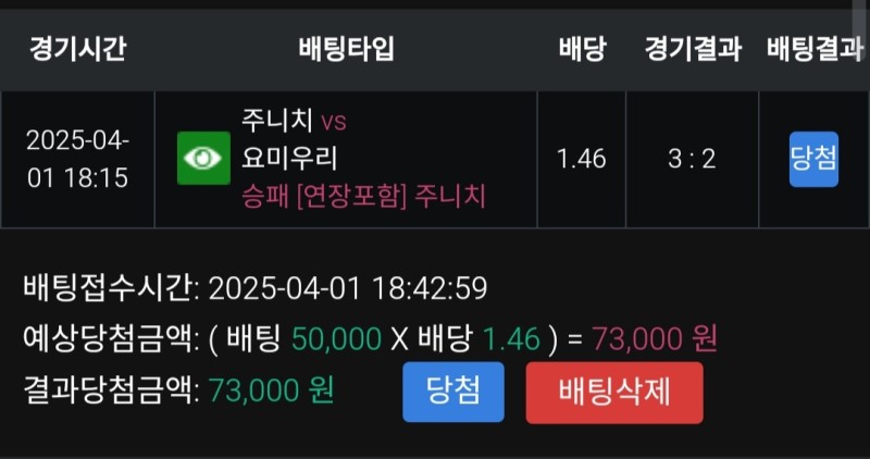 근데 베팅하자마자 귀신같이 동점돼서 당황했지만 어떻게 꾸역꾸역 역전하고 요미우리는 찬스 다 날리면서 겨우 승리