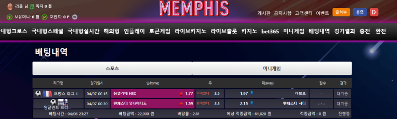 멤피스 첫 배팅 작성자 정보 리을쪽지보내기 자기소개 닉네임으로 검색쪽지보내기 자기소개 닉네임으로 검색 작성 작성일 2025.04.06 23:30 컨텐츠 정보 930 조회 2 댓글 0 추천 목록 관리 글검색 본문 메인벳 입금방식 귀찮게 바껴서 멤피스 첫 배팅해봅니다 잡리그 가는거 좋아하는 저한테 좋은 사이트 인거같습니다! 0 추천 관련자료 이전 멤피스) 스포츠 후기 작성일 2025.04.12 18:50 다음 메인벳 후기 작성일 2025.02.03 00:51 댓글 2 기커조님의 댓글 기커조쪽지보내기 자기소개 닉네임으로 검색쪽지보내기 자기소개 닉네임으로 검색 작성일 2025.04.07 01:19 화이팅입니다 화이팅입니다 마당발님의 댓글 마당발쪽지보내기 자기소개 닉네임으로 검색쪽지보내기 자기소개 닉네임으로 검색 작성일 2025.04.07 22:06 ㅎㅇㅌ ㅎㅇㅌ 로그인한 회원만 댓글 등록이 가능합니다. 목록 관리 글검색