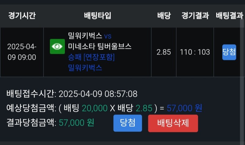 쇼미더벳 밀워키vs미네소타 후기 작성자 정보 마당발쪽지보내기 자기소개 닉네임으로 검색쪽지보내기 자기소개 닉네임으로 검색 작성 작성일 2025.04.09 23:11 컨텐츠 정보 956 조회 1 댓글 0 추천 목록 관리 글검색 본문 3쿼터까지 밀워키가 20점차 이상 앞서갔는데 4쿼터에 갑자기 수비가 살아나고 케빈포터주니어와 쿰보가 날뛰면서 기적같이 역전승 0 추천 관련자료 이전 쇼미더벳 샌프vs신시내티 후기 작성일 2025.04.09 23:14 다음 쇼미더벳 오클라호마vs레이커스 후기 작성일 2025.04.09 23:08 댓글 1 기커조님의 댓글 기커조쪽지보내기 자기소개 닉네임으로 검색쪽지보내기 자기소개 닉네임으로 검색 작성일 2025.04.10 05:53 축하합니다 축하합니다 로그인한 회원만 댓글 등록이 가능합니다. 목록 관리 글검색