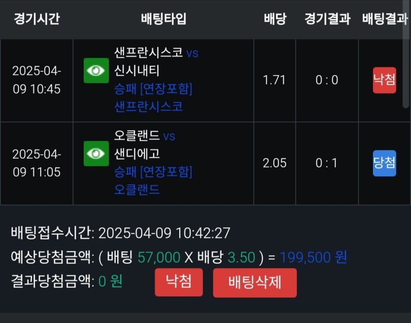 쇼미더벳 샌프vs신시내티 후기 작성자 정보 마당발쪽지보내기 자기소개 닉네임으로 검색쪽지보내기 자기소개 닉네임으로 검색 작성 작성일 2025.04.09 23:14 컨텐츠 정보 959 조회 1 댓글 0 추천 목록 관리 글검색 본문 샌프 투수들은 너무너무 잘했는데 타자들이 신시내티 투수들과 수비에 막히면서 1점도 못내고 패배 득점권에서 잘친것들도 야수 정면으로 가면서 이길만 했는데 너무 아쉬움 0 추천 관련자료 이전 멤피스 클리퍼스vs샌안토니오 후기 작성일 2025.04.10 00:02 다음 쇼미더벳 밀워키vs미네소타 후기 작성일 2025.04.09 23:11 댓글 1 기커조님의 댓글 기커조쪽지보내기 자기소개 닉네임으로 검색쪽지보내기 자기소개 닉네임으로 검색 작성일 2025.04.10 05:53 까비요 까비요 로그인한 회원만 댓글 등록이 가능합니다. 목록 관리 글검색