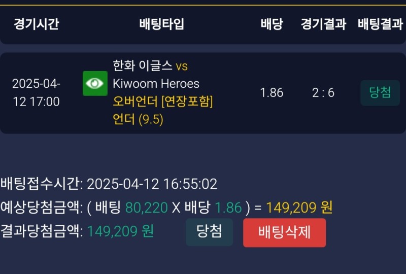 레드불 한화vs키움 후기 작성자 정보 마당발쪽지보내기 자기소개 닉네임으로 검색쪽지보내기 자기소개 닉네임으로 검색 작성 작성일 2025.04.12 21:12 컨텐츠 정보 982 조회 1 댓글 0 추천 목록 관리 글검색 본문 상백이랑 한화빠따 믿고 언더 갔는데 키움이 너무 잘쳐서 터질뻔 0 추천 관련자료 이전 레드불 롯데vs엔씨 후기 작성일 2025.04.12 21:15 다음 풀빠따 볼프스부르크vs라이프치히 후기 작성일 2025.04.12 19:11 댓글 1 기커조님의 댓글 기커조쪽지보내기 자기소개 닉네임으로 검색쪽지보내기 자기소개 닉네임으로 검색 작성일 2025.04.13 11:12 당첨축하요 당첨축하요 로그인한 회원만 댓글 등록이 가능합니다. 목록 관리 글검색