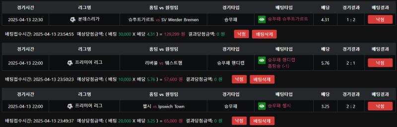 풀빠따 실시간 베팅 후기 작성자 정보 마당발쪽지보내기 자기소개 닉네임으로 검색쪽지보내기 자기소개 닉네임으로 검색 작성 작성일 2025.04.14 01:04 컨텐츠 정보 951 조회 3 댓글 0 추천 목록 관리 글검색 본문 실시간 배당 높은것들 다 찔러봤는데 하나도 못먹었다.... 특히 첼시가 제일 먹을만했는데 입스위치 골키퍼 너무 잘막아 0 추천 관련자료 이전 멤피스 울버햄튼vs토트넘 후기 작성일 2025.04.14 05:43 다음 레드불 첼시vs입스위치 후기 작성일 2025.04.14 01:03 댓글 3 기커조님의 댓글 기커조쪽지보내기 자기소개 닉네임으로 검색쪽지보내기 자기소개 닉네임으로 검색 작성일 2025.04.14 01:51 까비요 까비요 인생은도박이다님의 댓글 인생은도박이다쪽지보내기 자기소개 닉네임으로 검색쪽지보내기 자기소개 닉네임으로 검색 작성일 2025.04.14 09:02 까비 까비 켄트퍼플님의 댓글 켄트퍼플쪽지보내기 자기소개 닉네임으로 검색쪽지보내기 자기소개 닉네임으로 검색 작성일 2025.04.14 23:02 까비요 까비요 로그인한 회원만 댓글 등록이 가능합니다. 목록 관리 글검색