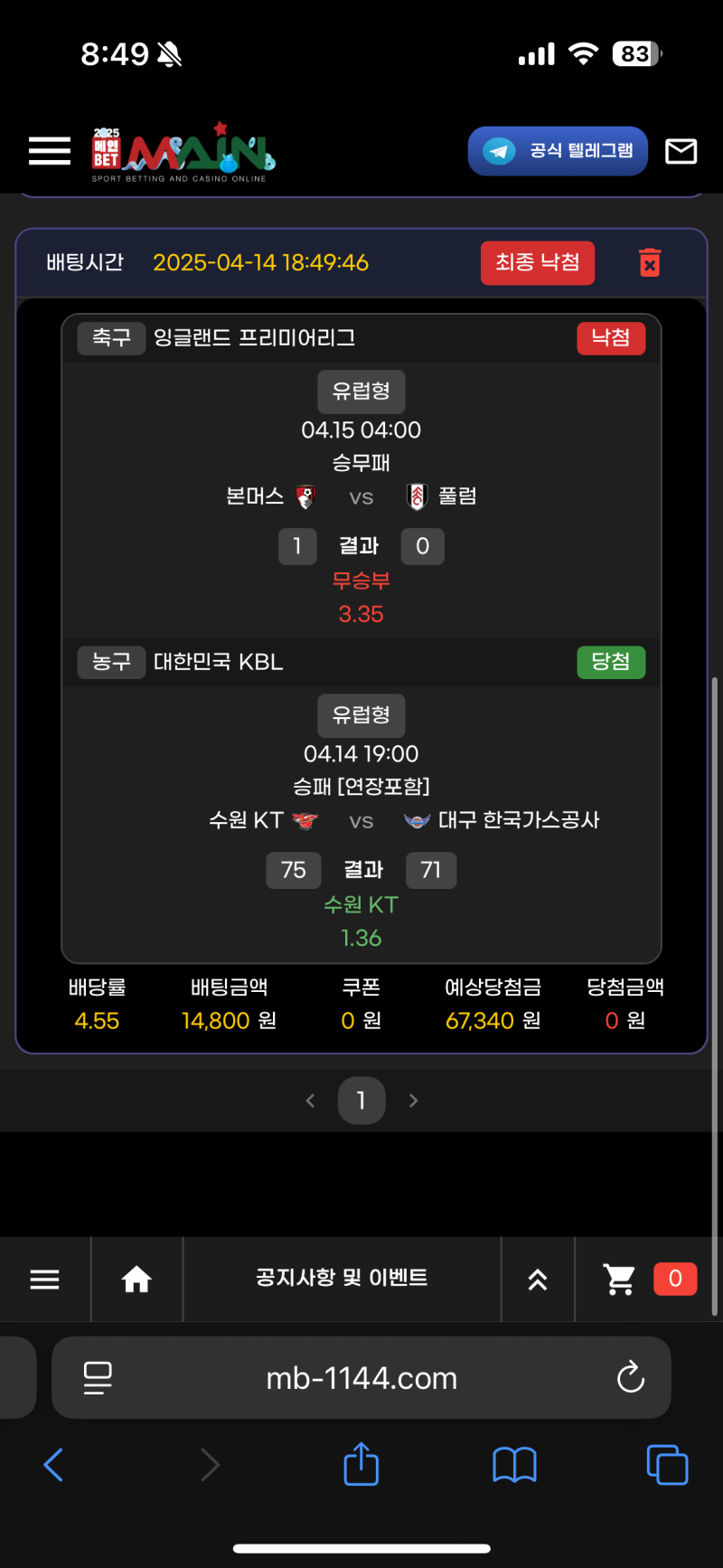 메인벳 ) 스포츠후기 작성자 정보 느바학개론쪽지보내기 자기소개 닉네임으로 검색쪽지보내기 자기소개 닉네임으로 검색 작성 작성일 2025.04.15 08:50 컨텐츠 정보 964 조회 1 댓글 0 추천 목록 관리 글검색 본문 오늘스포츠는 꼬였군 0 추천 관련자료 이전 풀빠따 ) 선픽후기 작성일 2025.04.15 11:05 다음 풀빠따 ) 스포츠후기 작성일 2025.04.15 06:45 댓글 1 기커조님의 댓글 기커조쪽지보내기 자기소개 닉네임으로 검색쪽지보내기 자기소개 닉네임으로 검색 작성일 2025.04.15 09:56 까비요 까비요 로그인한 회원만 댓글 등록이 가능합니다. 목록 관리 글검색