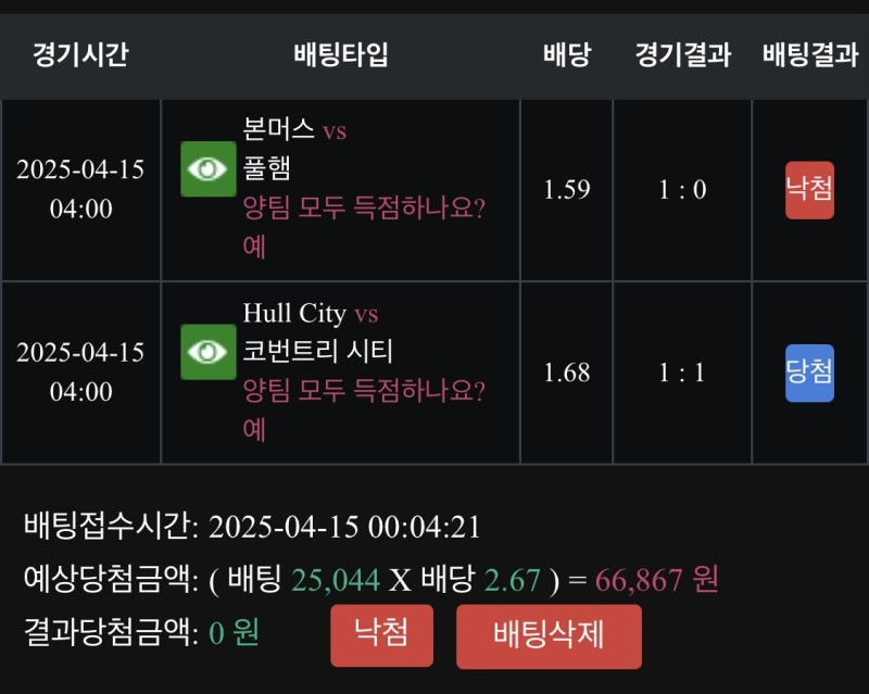 풀빠따 리그전 낙 후기 ㅜ 작성자 정보 낭만권위자야쪽지보내기 자기소개 닉네임으로 검색쪽지보내기 자기소개 닉네임으로 검색 작성 작성일 2025.04.15 16:51 컨텐츠 정보 968 조회 1 댓글 0 추천 목록 본문 풀빠따 벳 리그전 낙첨 후기 ㅜㅜ 본머스 풀럼 서로 개오바팀 전반 1분 입장골 넣고 바로터져버리네요.. 89분을 놀아버리노 ㅜㅜ 0 추천 관련자료 이전 멤피스) 적중 후기 작성일 2025.04.15 16:57 다음 멤피스 스포츠후기 작성일 2025.04.15 16:42 댓글 1 기커조님의 댓글 기커조쪽지보내기 자기소개 닉네임으로 검색쪽지보내기 자기소개 닉네임으로 검색 작성일 2025.04.15 18:09 까비입니다 까비입니다 로그인한 회원만 댓글 등록이 가능합니다. 목록