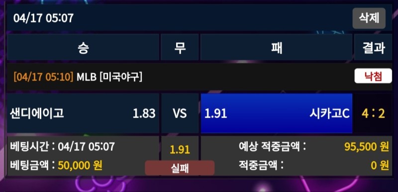 멤피스 샌디에이고vs컵스 후기 작성자 정보 마당발쪽지보내기 자기소개 닉네임으로 검색쪽지보내기 자기소개 닉네임으로 검색 작성 작성일 2025.04.17 19:55 컨텐츠 정보 954 조회 1 댓글 0 추천 목록 관리 글검색 본문 컵스 걸었는제 양팀 선발투수 둘 다 잘던지는 와중에 샌디가 약간 점수 더내서 사망 0 추천 관련자료 이전 멤피스 모비스vs정관장 후기 작성일 2025.04.17 21:50 다음 멤피스 필라델피아vs샌프란시스코 후기 작성일 2025.04.17 19:52 댓글 1 기커조님의 댓글 기커조쪽지보내기 자기소개 닉네임으로 검색쪽지보내기 자기소개 닉네임으로 검색 작성일 2025.04.17 20:17 까비입니다 까비입니다 로그인한 회원만 댓글 등록이 가능합니다. 목록 관리 글검색