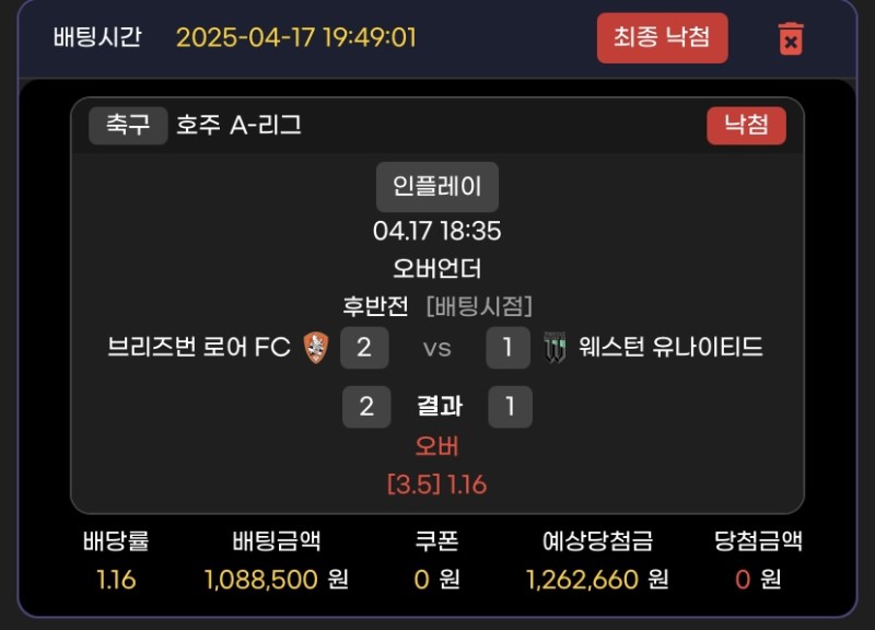 메인벳 후기 작성자 정보 안걸림쪽지보내기 자기소개 닉네임으로 검색쪽지보내기 자기소개 닉네임으로 검색 작성 작성일 2025.04.17 21:58 컨텐츠 정보 970 조회 1 댓글 0 추천 목록 관리 글검색 본문 당과낙 0 추천 관련자료 이전 메인벳 후기 작성일 2025.04.21 19:30 다음 메인벳 후기 작성일 2025.04.15 17:26 댓글 1 기커조님의 댓글 기커조쪽지보내기 자기소개 닉네임으로 검색쪽지보내기 자기소개 닉네임으로 검색 작성일 2025.04.17 21:59 당첨축하요 당첨축하요 로그인한 회원만 댓글 등록이 가능합니다. 목록 관리 글검색
