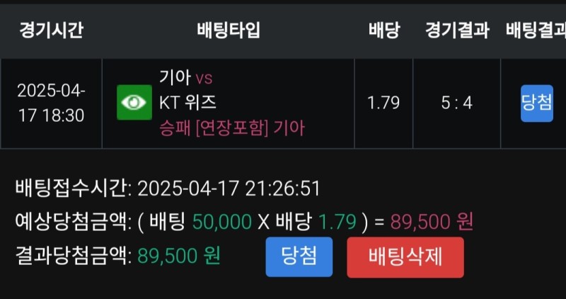 풀빠따 기아vs케이티 후기 작성자 정보 마당발쪽지보내기 자기소개 닉네임으로 검색쪽지보내기 자기소개 닉네임으로 검색 작성 작성일 2025.04.17 23:08 컨텐츠 정보 968 조회 2 댓글 0 추천 목록 관리 글검색 본문 9회말 기아가 1점차 뒤지고 있고 1사만루 상황에 실시간 베팅 나성범이 풀카운트까지 끌고 가서 끝내기 적시타로 적중 0 추천 관련자료 이전 멤피스 화이트삭스vs오클랜드 후기 작성일 2025.04.18 20:17 다음 레드불 레알 마드리드vs아스날 후기 작성일 2025.04.17 21:53 댓글 2 무역배킬러님의 댓글 무역배킬러쪽지보내기 자기소개 닉네임으로 검색쪽지보내기 자기소개 닉네임으로 검색 작성일 2025.04.17 23:12 ㅊㅋㅊㅋ ㅊㅋㅊㅋ 기커조님의 댓글 기커조쪽지보내기 자기소개 닉네임으로 검색쪽지보내기 자기소개 닉네임으로 검색 작성일 2025.04.18 09:41 당첨축하요 당첨축하요 로그인한 회원만 댓글 등록이 가능합니다. 목록 관리 글검색