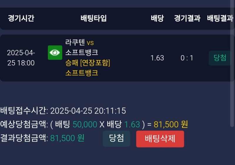 레드불 소프트뱅크vs라쿠텐 후기 작성자 정보 마당발쪽지보내기 자기소개 닉네임으로 검색쪽지보내기 자기소개 닉네임으로 검색 작성 작성일 2025.04.25 22:03 컨텐츠 정보 918 조회 2 댓글 0 추천 목록 관리 글검색 본문 소뱅 득점권 찬스인데 배당 좋길래 실시간 베팅 결국 무득으로 지나가긴 했는데 다음이닝에 점수내서 승리 0 추천 관련자료 이전 레드불 템파베이vs애리조나 후기 작성일 2025.04.25 22:05 다음 레드불 티원vs딮기 후기 작성일 2025.04.25 22:02 댓글 2 기커조님의 댓글 기커조쪽지보내기 자기소개 닉네임으로 검색쪽지보내기 자기소개 닉네임으로 검색 작성일 2025.04.25 22:04 축하드려요 축하드려요 맥콜제로2님의 댓글 맥콜제로2쪽지보내기 자기소개 닉네임으로 검색쪽지보내기 자기소개 닉네임으로 검색 작성일 2025.04.26 02:46 굿굿요 굿굿요 로그인한 회원만 댓글 등록이 가능합니다. 목록 관리 글검색