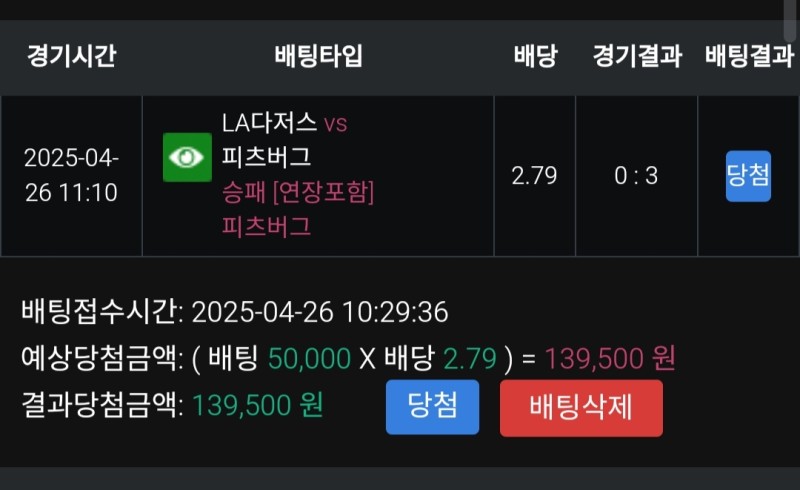 풀빠따 피츠버그vs다저스 후기 작성자 정보 마당발쪽지보내기 자기소개 닉네임으로 검색쪽지보내기 자기소개 닉네임으로 검색 작성 작성일 2025.04.26 23:53 컨텐츠 정보 927 조회 1 댓글 0 추천 목록 관리 글검색 본문 야마모토vs스킨스 양 팀 선발이 너무 잘던지는 애들이라 타구운 좋은팀이 이길 것 같아서 역배 베팅 1회부터 피츠버그가 선취점 내고 다저스 타선은 봉쇄시키면서 승리 0 추천 관련자료 이전 풀빠따 올랜도vs보스턴 후기 작성일 2025.04.26 23:54 다음 멤피스 밀워키vs인디애나 후기 작성일 2025.04.26 23:51 댓글 1 기커조님의 댓글 기커조쪽지보내기 자기소개 닉네임으로 검색쪽지보내기 자기소개 닉네임으로 검색 작성일 2025.04.27 11:16 당첨축하요 당첨축하요 로그인한 회원만 댓글 등록이 가능합니다. 목록 관리 글검색