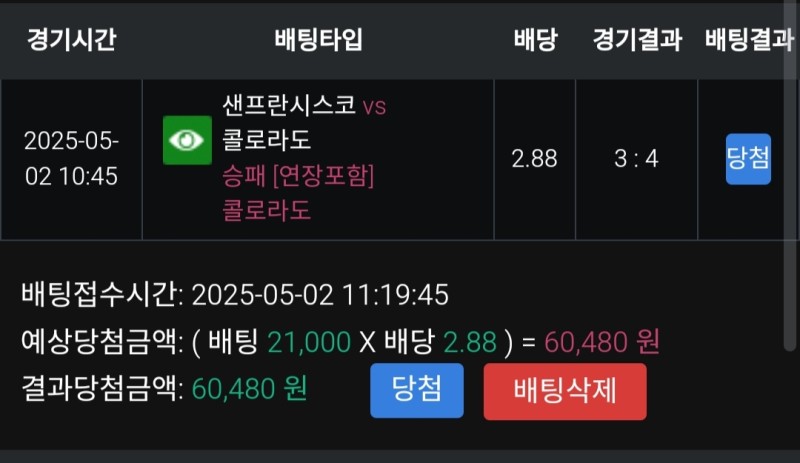 풀빠따 샌프vs콜로라도 후기 작성자 정보 마당발쪽지보내기 자기소개 닉네임으로 검색쪽지보내기 자기소개 닉네임으로 검색 작성 작성일 2025.05.02 22:21 컨텐츠 정보 918 조회 1 댓글 0 추천 목록 관리 글검색 본문 오늘 샌프 선발이 승리운 없는 벌렌더라서 콜로라도 베팅 계속 투수전이 이어지다가 8회에 콜로라도가 역전하고 승리 0 추천 관련자료 이전 레드불 워싱턴vs필라 후기 작성일 2025.05.02 22:24 다음 풀빠따 알 나스르vs가와사키 후기 작성일 2025.05.01 15:53 댓글 1 기커조님의 댓글 기커조쪽지보내기 자기소개 닉네임으로 검색쪽지보내기 자기소개 닉네임으로 검색 작성일 2025.05.02 23:04 축하합니다 축하합니다 로그인한 회원만 댓글 등록이 가능합니다. 목록 관리 글검색