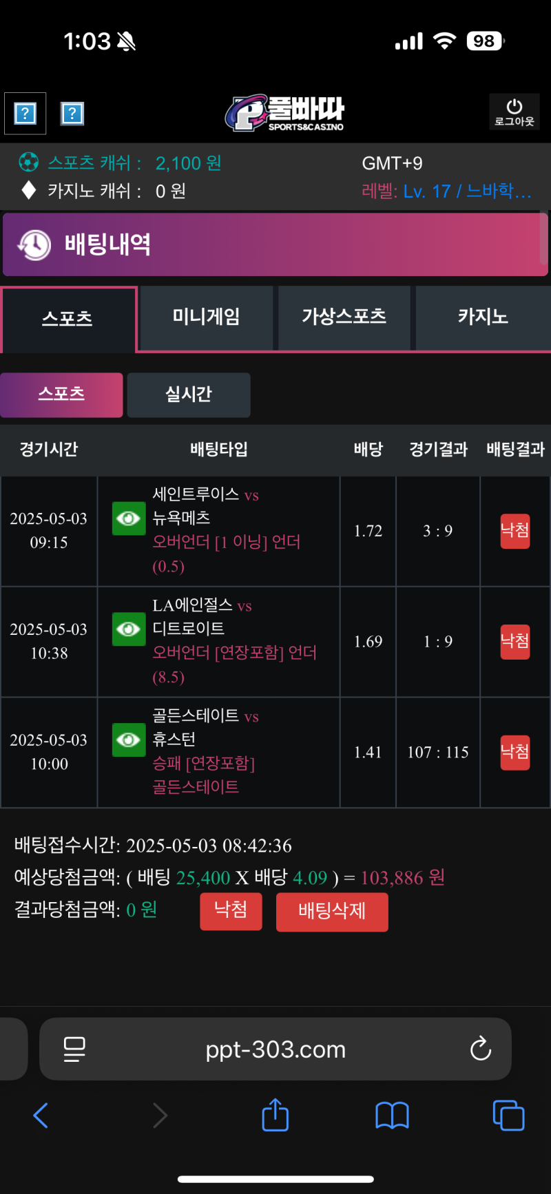 풀빠다 ) 스포츠후기 작성자 정보 느바학개론쪽지보내기 자기소개 닉네임으로 검색쪽지보내기 자기소개 닉네임으로 검색 작성 작성일 2025.05.03 13:03 컨텐츠 정보 933 조회 1 댓글 0 추천 목록 관리 글검색 본문 올낙첨 0 추천 관련자료 이전 메인벳 ) 실시간후기 작성일 2025.05.04 10:52 다음 레드불 ) 스포츠후기 작성일 2025.05.03 13:02 댓글 1 기커조님의 댓글 기커조쪽지보내기 자기소개 닉네임으로 검색쪽지보내기 자기소개 닉네임으로 검색 작성일 2025.05.03 13:15 까비입니다 까비입니다 로그인한 회원만 댓글 등록이 가능합니다. 목록 관리 글검색