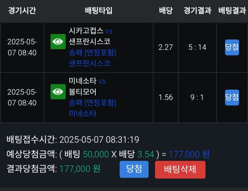 쇼미더벳 샌프란시스코vs시카고컵스 후기 작성자 정보 마당발쪽지보내기 자기소개 닉네임으로 검색쪽지보내기 자기소개 닉네임으로 검색 작성 작성일 2025.05.07 22:56 컨텐츠 정보 945 조회 1 댓글 0 추천 목록 관리 글검색 본문 벌렌더의 시즌 첫승 도전을 믿고 샌프 베팅 겨우겨우 승리요건을 만들어서 오늘 드디어 첫승하나 싶었지만 9회말 워커의 블론세이브로 날아갔다 다행히 연장가서 승리로 베팅은 적중 0 추천 관련자료 이전 레드불 애슬래틱스vs시애틀 후기 작성일 2025.05.08 17:00 다음 레드불 인테르vs바르셀로나 후기 작성일 2025.05.07 22:55 댓글 1 기커조님의 댓글 기커조쪽지보내기 자기소개 닉네임으로 검색쪽지보내기 자기소개 닉네임으로 검색 작성일 2025.05.07 23:23 당첨축하요 당첨축하요 로그인한 회원만 댓글 등록이 가능합니다. 목록 관리 글검색