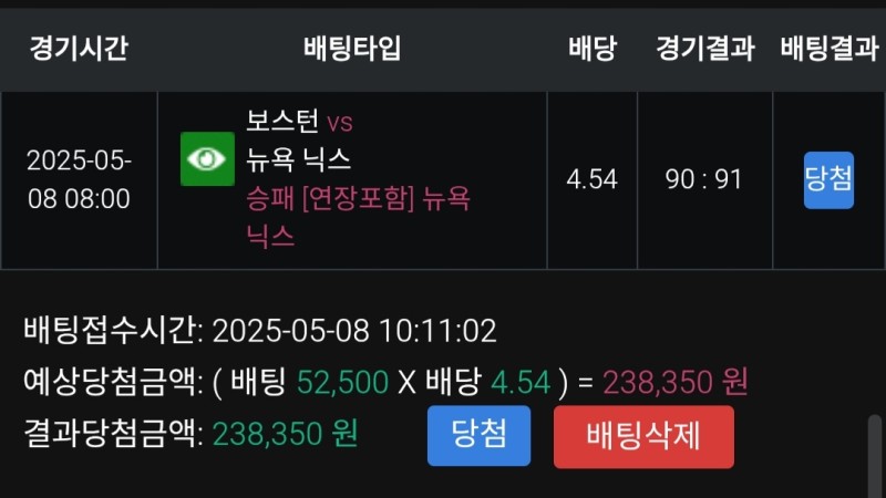 보스턴이 설마 오늘도 질까 싶었는데 테이텀이 안들어가는 풀업을 주구장창 던지길래 점수차가 좁혀졌을때 뉴욕 베팅