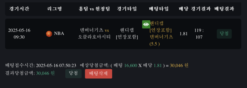 돌직구 적중 후기 작성자 정보 흑자머신쪽지보내기 자기소개 닉네임으로 검색쪽지보내기 자기소개 닉네임으로 검색 작성 작성일 2025.05.16 14:03 컨텐츠 정보 933 조회 2 댓글 0 추천 목록 관리 글검색 본문 오늘 유일한 적중 덴버 역마핸까지 했네여 ㄷㄷ 0 추천 관련자료 이전 돌직구 낙첨 후기 작성일 2025.05.16 14:04 다음 돌직구 낙첨후기 작성일 2025.05.16 14:02 댓글 2 기커조님의 댓글 기커조쪽지보내기 자기소개 닉네임으로 검색쪽지보내기 자기소개 닉네임으로 검색 작성일 2025.05.16 19:07 적중축하요 적중축하요 은하단님의 댓글 은하단쪽지보내기 자기소개 닉네임으로 검색쪽지보내기 자기소개 닉네임으로 검색 작성일 2025.06.03 03:12 ㅊㅊ ㅊㅊ 로그인한 회원만 댓글 등록이 가능합니다. 목록 관리 글검색