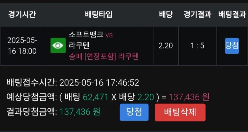 풀빠따 라쿠텐vs소프트뱅크 후기 작성자 정보 마당발쪽지보내기 자기소개 닉네임으로 검색쪽지보내기 자기소개 닉네임으로 검색 작성 작성일 2025.05.16 23:53 컨텐츠 정보 915 조회 2 댓글 0 추천 목록 관리 글검색 본문 소뱅 선발이 아리하라길래 반대베팅 아리하라상대로 점수뽑고 후지이는 호투하면서 무난하게 승리 0 추천 관련자료 이전 멤피스 라쿠텐vs소프트뱅크 후기 작성일 2025.05.17 17:11 다음 쇼미더벳 히로시마vs한신 후기 작성일 2025.05.16 23:52 댓글 2 기커조님의 댓글 기커조쪽지보내기 자기소개 닉네임으로 검색쪽지보내기 자기소개 닉네임으로 검색 작성일 2025.05.17 03:48 축하합니다 축하합니다 은하단님의 댓글 은하단쪽지보내기 자기소개 닉네임으로 검색쪽지보내기 자기소개 닉네임으로 검색 작성일 2025.06.03 03:15 ㅊㅊ ㅊㅊ 로그인한 회원만 댓글 등록이 가능합니다. 목록 관리 글검색