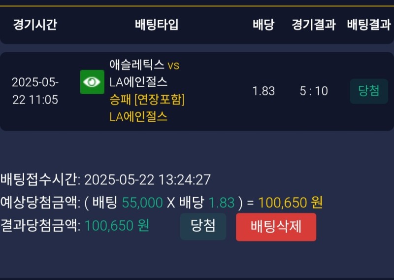 레드불 에슬레틱스vs에인절스 후기 작성자 정보 마당발쪽지보내기 자기소개 닉네임으로 검색쪽지보내기 자기소개 닉네임으로 검색 작성 작성일 2025.05.22 18:33 컨텐츠 정보 954 조회 2 댓글 0 추천 목록 관리 글검색 본문 후반에 에인절스가 1점차로 이기고 있는데 실시간 배당이 좋아서 베팅 무사 1, 2루를 무득점으로 막아내고 다시 점수차 벌려서 가볍게 승리 0 추천 관련자료 이전 쇼미더벳 뉴욕메츠vs보스턴 후기 작성일 2025.05.22 18:37 다음 멤피스 뉴욕vs인디애나 후기 작성일 2025.05.22 18:23 댓글 2 기커조님의 댓글 기커조쪽지보내기 자기소개 닉네임으로 검색쪽지보내기 자기소개 닉네임으로 검색 작성일 2025.05.22 19:39 당첨축하요 당첨축하요 은하단님의 댓글 은하단쪽지보내기 자기소개 닉네임으로 검색쪽지보내기 자기소개 닉네임으로 검색 작성일 2025.06.03 02:48 ㅅㅅ ㅅㅅ 로그인한 회원만 댓글 등록이 가능합니다. 목록 관리 글검색