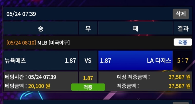 멤피스 다저스vs메츠 후기 작성자 정보 마당발쪽지보내기 자기소개 닉네임으로 검색쪽지보내기 자기소개 닉네임으로 검색 작성 작성일 2025.05.24 15:02 컨텐츠 정보 896 조회 3 댓글 0 추천 목록 관리 글검색 본문 커쇼 믿고 다저스 베팅 우천중지됐다가 시작해서 선발이 별 의미 없게 됐지만 연장전 끝에 승리 0 추천 관련자료 이전 멤피스 피츠버그vs밀워키 후기 작성일 2025.05.24 15:05 다음 멤피스 삼성vs기아 후기 작성일 2025.05.24 06:03 댓글 3 기커조님의 댓글 기커조쪽지보내기 자기소개 닉네임으로 검색쪽지보내기 자기소개 닉네임으로 검색 작성일 2025.05.24 17:52 적중축하요 적중축하요 인생은도박이다님의 댓글 인생은도박이다쪽지보내기 자기소개 닉네임으로 검색쪽지보내기 자기소개 닉네임으로 검색 작성일 2025.05.24 18:11 나이따 나이따 은하단님의 댓글 은하단쪽지보내기 자기소개 닉네임으로 검색쪽지보내기 자기소개 닉네임으로 검색 작성일 2025.06.02 16:40 축하축하 축하축하 로그인한 회원만 댓글 등록이 가능합니다. 목록 관리 글검색