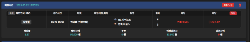 망할 한화 때문에 돈빨렷네요 ㅠ