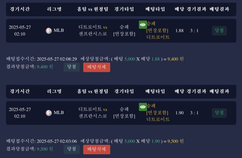 레드불 MLB 디트로이트 적중후기 작성자 정보 흑자머신쪽지보내기 자기소개 닉네임으로 검색쪽지보내기 자기소개 닉네임으로 검색 작성 작성일 2025.05.27 13:48 컨텐츠 정보 931 조회 2 댓글 0 추천 목록 관리 글검색 본문 라스 샌프에 몰린 거 보고 바로 바음 0 추천 관련자료 이전 레드불 MLB 적중 후기 작성일 2025.05.27 13:50 다음 레드불 MLB 실시간 적중 후기 작성일 2025.05.27 13:47 댓글 2 기커조님의 댓글 기커조쪽지보내기 자기소개 닉네임으로 검색쪽지보내기 자기소개 닉네임으로 검색 작성일 2025.05.27 18:59 축하합니다 축하합니다 은하단님의 댓글 은하단쪽지보내기 자기소개 닉네임으로 검색쪽지보내기 자기소개 닉네임으로 검색 작성일 2025.06.03 01:40 축하 축하 로그인한 회원만 댓글 등록이 가능합니다. 목록 관리 글검색