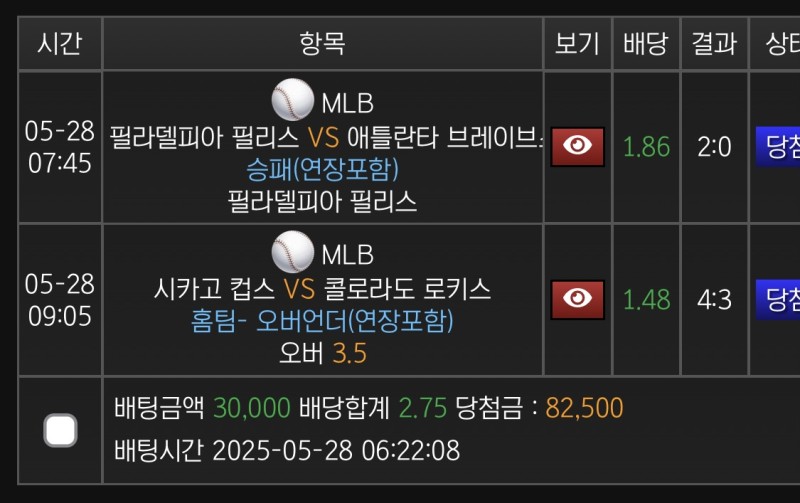 쇼미더벳) 스포츠 적중 후기 작성자 정보 낭만권위자야쪽지보내기 자기소개 닉네임으로 검색쪽지보내기 자기소개 닉네임으로 검색 작성 작성일 2025.05.28 18:28 컨텐츠 정보 945 조회 2 댓글 0 추천 목록 관리 글검색 본문 소액 굿 0 추천 관련자료 이전 쇼미더벳) 낙첨후기 작성일 2025.05.29 01:03 다음 돌직구 낙첨 후기 작성일 2025.05.28 18:16 댓글 2 기커조님의 댓글 기커조쪽지보내기 자기소개 닉네임으로 검색쪽지보내기 자기소개 닉네임으로 검색 작성일 2025.05.28 19:35 당첨축하요 당첨축하요 은하단님의 댓글 은하단쪽지보내기 자기소개 닉네임으로 검색쪽지보내기 자기소개 닉네임으로 검색 작성일 2025.06.02 15:43 적중축하요 적중축하요 로그인한 회원만 댓글 등록이 가능합니다. 목록 관리 글검색