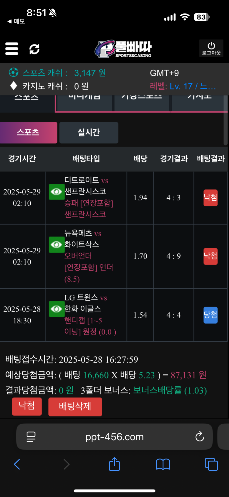 풀빠따 ) 스포츠후기 작성자 정보 느바학개론쪽지보내기 자기소개 닉네임으로 검색쪽지보내기 자기소개 닉네임으로 검색 작성 작성일 2025.05.29 09:02 컨텐츠 정보 911 조회 2 댓글 0 추천 목록 관리 글검색 본문 오늘도 ㅎㅇㅌ 0 추천 관련자료 이전 벳아이 ) 스포츠후기 작성일 2025.05.29 09:03 다음 풀빠다 ) 스포츠후기 작성일 2025.05.28 11:30 댓글 2 기커조님의 댓글 기커조쪽지보내기 자기소개 닉네임으로 검색쪽지보내기 자기소개 닉네임으로 검색 작성일 2025.05.29 12:20 적중축하요 적중축하요 은하단님의 댓글 은하단쪽지보내기 자기소개 닉네임으로 검색쪽지보내기 자기소개 닉네임으로 검색 작성일 2025.06.02 15:47 축하요 축하요 로그인한 회원만 댓글 등록이 가능합니다. 목록 관리 글검색