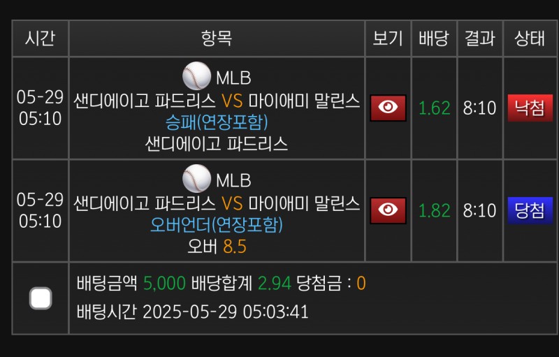 돌직구 MLB 미적 후기 작성자 정보 흑자머신쪽지보내기 자기소개 닉네임으로 검색쪽지보내기 자기소개 닉네임으로 검색 작성 작성일 2025.05.29 13:44 컨텐츠 정보 918 조회 2 댓글 0 추천 목록 관리 글검색 본문 어쩌다 샌디가 홈에서 마앰한테.. 영구까지 묻었었네요 0 추천 관련자료 이전 돌직구 MLB 미적 후기 작성일 2025.05.29 13:45 다음 멤피스 NBA 적중 후기 작성일 2025.05.29 13:38 댓글 2 기커조님의 댓글 기커조쪽지보내기 자기소개 닉네임으로 검색쪽지보내기 자기소개 닉네임으로 검색 작성일 2025.05.29 13:45 까비입니다 까비입니다 은하단님의 댓글 은하단쪽지보내기 자기소개 닉네임으로 검색쪽지보내기 자기소개 닉네임으로 검색 작성일 2025.06.02 15:11 까비요 까비요 로그인한 회원만 댓글 등록이 가능합니다. 목록 관리 글검색