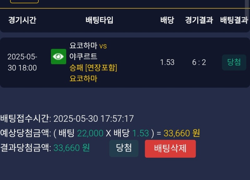 레드불 요코하마vs야쿠르트 후기 작성자 정보 마당발쪽지보내기 자기소개 닉네임으로 검색쪽지보내기 자기소개 닉네임으로 검색 작성 작성일 2025.05.30 23:15 컨텐츠 정보 935 조회 2 댓글 0 추천 목록 관리 글검색 본문 선발 타선 전부 차이나는 경기라서 요코하마 베팅 0 추천 관련자료 이전 메인벳 kt위즈vs기아 후기 작성일 2025.05.30 23:16 다음 쇼미더벳 키움vs두산 후기 작성일 2025.05.30 23:15 댓글 2 기커조님의 댓글 기커조쪽지보내기 자기소개 닉네임으로 검색쪽지보내기 자기소개 닉네임으로 검색 작성일 2025.05.31 09:51 당첨축하요 당첨축하요 은하단님의 댓글 은하단쪽지보내기 자기소개 닉네임으로 검색쪽지보내기 자기소개 닉네임으로 검색 작성일 2025.06.02 15:59 축하요 축하요 로그인한 회원만 댓글 등록이 가능합니다. 목록 관리 글검색