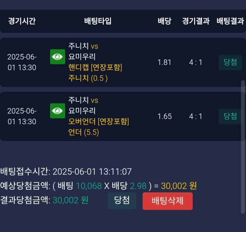 레드불 주니치vs요미우리 후기 작성자 정보 마당발쪽지보내기 자기소개 닉네임으로 검색쪽지보내기 자기소개 닉네임으로 검색 작성 작성일 2025.06.01 20:29 컨텐츠 정보 864 조회 2 댓글 0 추천 목록 관리 글검색 본문 주니치 플핸언더 갔는데 갑자기 대량득점해서 언더 터질뻔 하다가 겨우 쩜오언 0 추천 관련자료 이전 쇼미더벳 한화생명vs피어엑스 후기 작성일 2025.06.01 20:31 다음 풀빠따 오릭스vs세이부 후기 작성일 2025.05.31 22:47 댓글 2 기커조님의 댓글 기커조쪽지보내기 자기소개 닉네임으로 검색쪽지보내기 자기소개 닉네임으로 검색 작성일 2025.06.02 10:19 축하합니다 축하합니다 은하단님의 댓글 은하단쪽지보내기 자기소개 닉네임으로 검색쪽지보내기 자기소개 닉네임으로 검색 작성일 2025.06.02 16:20 축하요 축하요 로그인한 회원만 댓글 등록이 가능합니다. 목록 관리 글검색