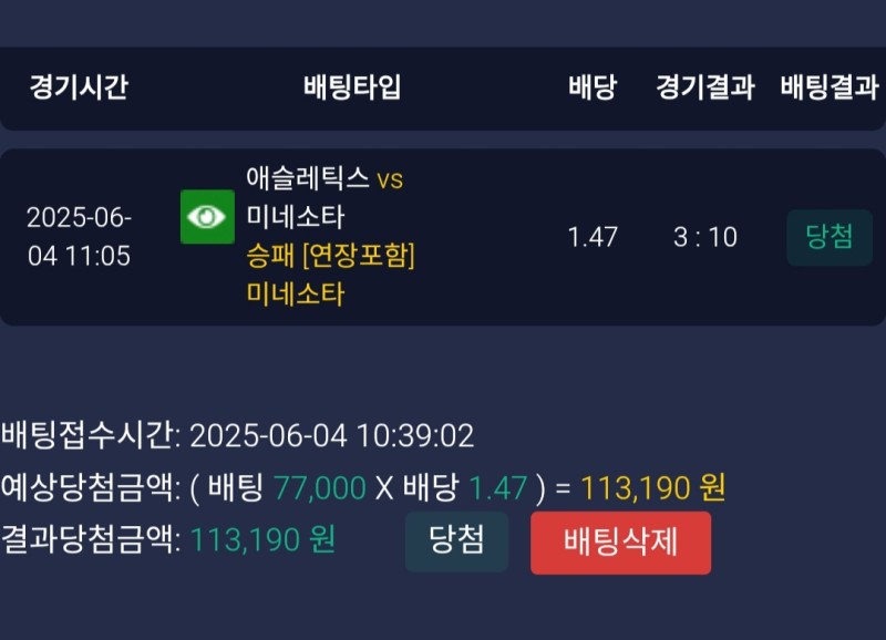 레드불 미네소타vs애슬레틱스 후기 작성자 정보 마당발쪽지보내기 자기소개 닉네임으로 검색쪽지보내기 자기소개 닉네임으로 검색 작성 작성일 2025.06.04 21:37 컨텐츠 정보 899 조회 1 댓글 0 추천 목록 관리 글검색 본문 애슬레틱스가 초반에는 앞서갔지만 미네가 빠따로 줘패고 역전승 0 추천 관련자료 이전 레드불 신시내티vs밀워키 후기 작성일 2025.06.05 19:46 다음 레드불 kt위즈vs한화 후기 작성일 2025.06.04 21:36 댓글 1 기커조님의 댓글 기커조쪽지보내기 자기소개 닉네임으로 검색쪽지보내기 자기소개 닉네임으로 검색 작성일 2025.06.04 22:38 적중축하요 적중축하요 로그인한 회원만 댓글 등록이 가능합니다. 목록 관리 글검색