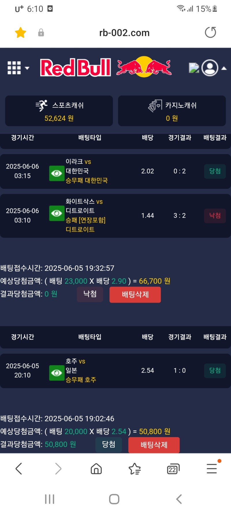 레드불 후기 작성자 정보 제이덥쪽지보내기 자기소개 닉네임으로 검색쪽지보내기 자기소개 닉네임으로 검색 작성 작성일 2025.06.06 06:11 컨텐츠 정보 894 조회 2 댓글 0 추천 목록 관리 글검색 본문 선픽 2승1패 디트 시봉새들ㅡ 0 추천 관련자료 이전 레드불 후기 작성일 2025.06.07 04:02 다음 레드불 후기 작성일 2025.06.03 21:01 댓글 2 기커조님의 댓글 기커조쪽지보내기 자기소개 닉네임으로 검색쪽지보내기 자기소개 닉네임으로 검색 작성일 2025.06.06 08:23 당첨축하요 당첨축하요 인생은도박이다님의 댓글 인생은도박이다쪽지보내기 자기소개 닉네임으로 검색쪽지보내기 자기소개 닉네임으로 검색 작성일 2025.06.06 08:39 굿럭 굿럭 로그인한 회원만 댓글 등록이 가능합니다. 목록 관리 글검색