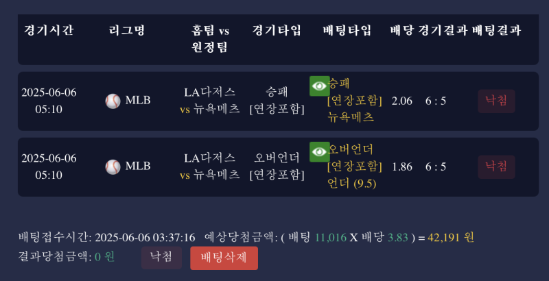 레드불 미적 후기 작성자 정보 흑자머신쪽지보내기 자기소개 닉네임으로 검색쪽지보내기 자기소개 닉네임으로 검색 작성 작성일 2025.06.06 14:16 컨텐츠 정보 889 조회 1 댓글 0 추천 목록 본문 ㄲㅂ요 다저스 2점만 덜 내지 0 추천 관련자료 이전 레드불 적중 후기 작성일 2025.06.06 14:16 다음 레드불 적중 후기 작성일 2025.06.06 14:15 댓글 1 기커조님의 댓글 기커조쪽지보내기 자기소개 닉네임으로 검색쪽지보내기 자기소개 닉네임으로 검색 작성일 2025.06.06 15:51 까비요 까비요 로그인한 회원만 댓글 등록이 가능합니다. 목록