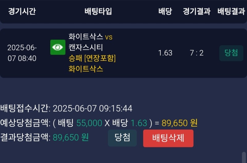 레드불 화이트삭스vs캔자스시티 후기 작성자 정보 마당발쪽지보내기 자기소개 닉네임으로 검색쪽지보내기 자기소개 닉네임으로 검색 작성 작성일 2025.06.07 22:36 컨텐츠 정보 929 조회 1 댓글 0 추천 목록 관리 글검색 본문 캔자스시티가 득점권에서 말아먹길래 화이트삭스 베팅 0 추천 관련자료 이전 쇼미더벳 주니치vs지바롯데 후기 작성일 2025.06.08 16:37 다음 멤피스 웨이보vs아이지 후기 작성일 2025.06.07 22:35 댓글 1 기커조님의 댓글 기커조쪽지보내기 자기소개 닉네임으로 검색쪽지보내기 자기소개 닉네임으로 검색 작성일 2025.06.07 22:43 축하합니다 축하합니다 로그인한 회원만 댓글 등록이 가능합니다. 목록 관리 글검색