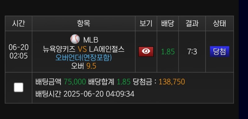 쇼미더벳 양키스vs에인절스 후기 작성자 정보 마당발쪽지보내기 자기소개 닉네임으로 검색쪽지보내기 자기소개 닉네임으로 검색 작성 작성일 2025.06.20 23:00 컨텐츠 정보 348 조회 1 댓글 0 추천 목록 관리 글검색 본문 실시간 오바 갔는데 8회말 기적같은 쩜오옵 0 추천 관련자료 이전 콜벳 클리블랜드vs샌프란시스코 후기 작성일 2025.06.20 23:00 다음 메인벳 한화vs롯데 후기 작성일 2025.06.18 22:53 댓글 1 기커조님의 댓글 기커조쪽지보내기 자기소개 닉네임으로 검색쪽지보내기 자기소개 닉네임으로 검색 작성일 2025.06.21 00:41 당첨축하요 당첨축하요 로그인한 회원만 댓글 등록이 가능합니다. 목록 관리 글검색