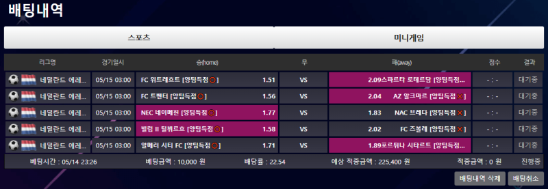 위트 양득 X / 트벤테 양득 X / 네이메헌 양득 O / 빌럼 양득 O / 알메러 시티 양득 X