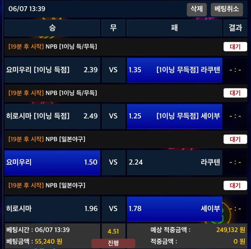돌직구 낙첨