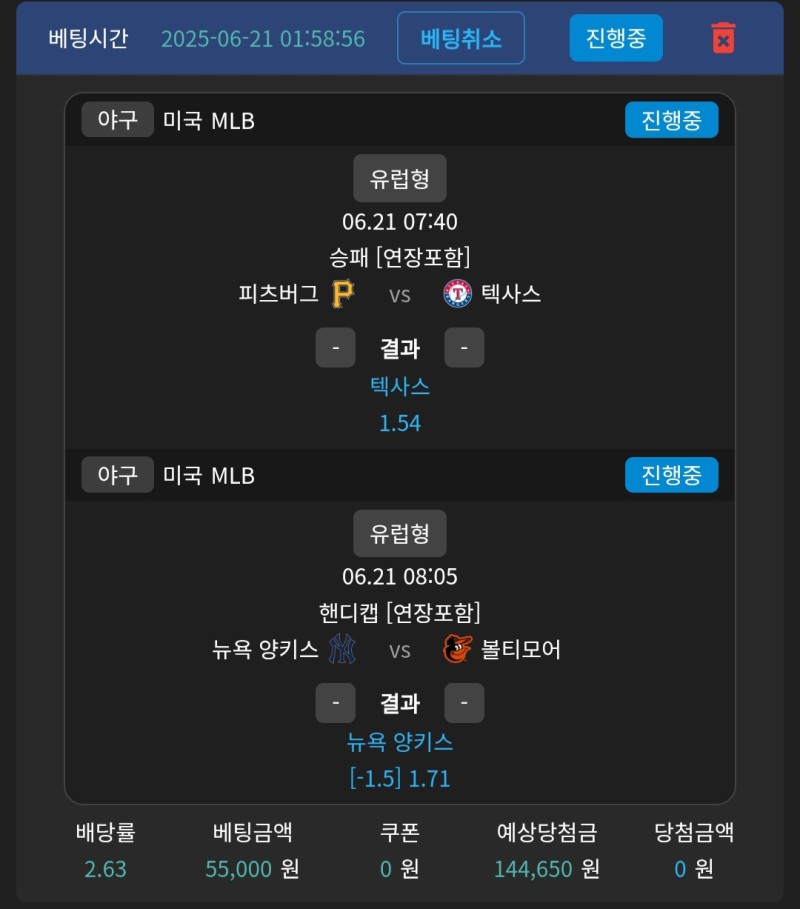 양키스1.5마핸 . 텍사스 승