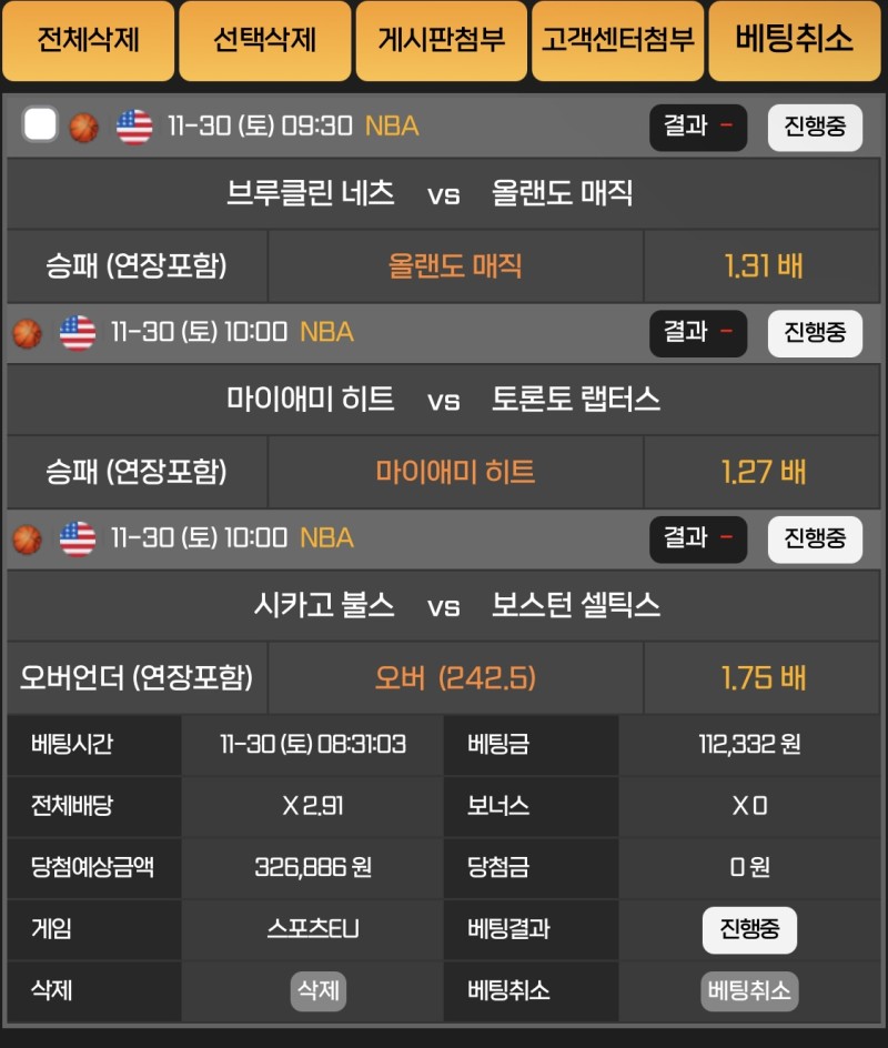 올랜도 승, 마이애미 승, 시카고 242.5 오버