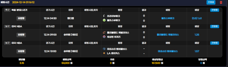 볼프스부르크 0.5플핸 ,클블1쿼승 ,미네소타1쿼승