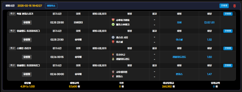 슈투 2.5옵+아스널 승+ 레알 승+ 본머 승