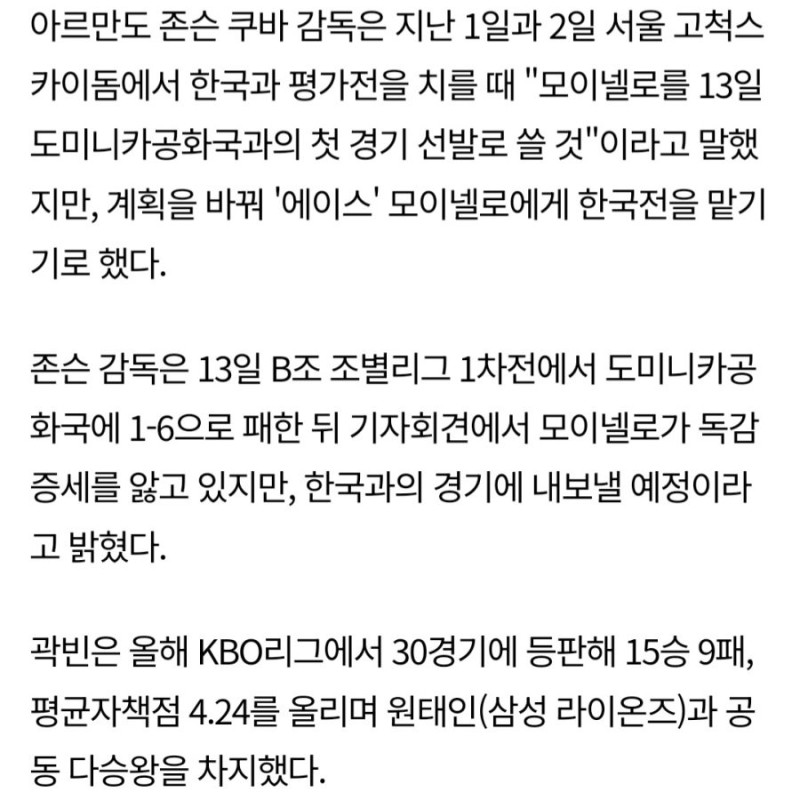 쿠바 중간 투수들 봤는데 별로 좋지가 않음 접전 상황이면 주니치에서 뛰는 마르티네즈가 나오겠지만