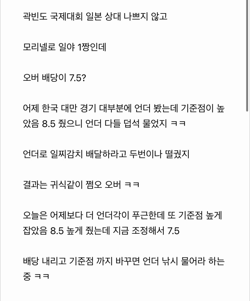 소름 돋는 베일 픽 ㅇㅈ?? 작성자 정보 베일쪽지보내기 자기소개 닉네임으로 검색쪽지보내기 자기소개 닉네임으로 검색 작성 작성일 2024.11.14 19:42 컨텐츠 정보 133 조회 18 댓글 0 추천 목록 본문 모이넬로 왜 저 배당에/오버인지 답이 나왔제 애기들 분위기 타면 키움마냥 아무도 못 막음 1.5 마핸이 아쉽네 갈껄충 언더도 배당사들이 꼬아서 언더 꼬들긴거임 ㅋㅋ 0 추천 관련자료 이전 아 진짜 심판 패죽이고싶다 작성일 2024.11.14 19:42 다음 모이넬로 ㄱㅅㄲ..... 작성일 2024.11.14 19:41 댓글 18 쫄병님의 댓글 쫄병쪽지보내기 자기소개 닉네임으로 검색쪽지보내기 자기소개 닉네임으로 검색 작성일 2024.11.14 19:44 ㅅㅅㅅ ㅅㅅㅅ 베일님의 댓글의 댓글 베일쪽지보내기 자기소개 닉네임으로 검색쪽지보내기 자기소개 닉네임으로 검색 작성일 2024.11.14 19:44 1.5 마핸+오버+사우디 언더+한국축구 1.5 오버 가즈앙 1.5 마핸+오버+사우디 언더+한국축구 1.5 오버 가즈앙 ㄱㅅㅁ님의 댓글 ㄱㅅㅁ쪽지보내기 자기소개 닉네임으로 검색쪽지보내기 자기소개 닉네임으로 검색 작성일 2024.11.14 19:47 ㄷㄷ ㄷㄷ 피닉스각선생님의 댓글 피닉스각선생쪽지보내기 자기소개 닉네임으로 검색쪽지보내기 자기소개 닉네임으로 검색 작성일 2024.11.14 20:04 오 오 피닉스각선생님의 댓글 피닉스각선생쪽지보내기 자기소개 닉네임으로 검색쪽지보내기 자기소개 닉네임으로 검색 작성일 2024.11.14 20:04 ㄷㄷ ㄷㄷ 토신토존님의 댓글 토신토존쪽지보내기 자기소개 닉네임으로 검색쪽지보내기 자기소개 닉네임으로 검색 작성일 2024.11.14 20:13 ㅇㅈ ㅇㅈ 인생은도박이다님의 댓글 인생은도박이다쪽지보내기 자기소개 닉네임으로 검색쪽지보내기 자기소개 닉네임으로 검색 작성일 2024.11.14 20:45 ㄷㄷㄷ ㄷㄷㄷ 스테판커쇼님의 댓글 스테판커쇼쪽지보내기 자기소개 닉네임으로 검색쪽지보내기 자기소개 닉네임으로 검색 작성일 2024.11.14 21:30 ㄷㄷ ㄷㄷ 달먹님의 댓글 달먹쪽지보내기 자기소개 닉네임으로 검색쪽지보내기 자기소개 닉네임으로 검색 작성일 2024.11.14 23:04 ㅇㅈ ㅇㅈ 쫄병님의 댓글 쫄병쪽지보내기 자기소개 닉네임으로 검색쪽지보내기 자기소개 닉네임으로 검색 작성일 2024.11.14 23:04 ㅇㅈ ㅇㅈ 딸배님의 댓글 딸배쪽지보내기 자기소개 닉네임으로 검색쪽지보내기 자기소개 닉네임으로 검색 작성일 2024.11.15 00:36 ㄷㄷ ㄷㄷ 기커조님의 댓글 기커조쪽지보내기 자기소개 닉네임으로 검색쪽지보내기 자기소개 닉네임으로 검색 작성일 2024.11.15 01:11 ㄷㄷ ㄷㄷ 두두님의 댓글 두두쪽지보내기 자기소개 닉네임으로 검색쪽지보내기 자기소개 닉네임으로 검색 작성일 2024.11.15 08:56 ㄷ ㄷ 1출1억5천환님의 댓글 1출1억5천환쪽지보내기 자기소개 닉네임으로 검색쪽지보내기 자기소개 닉네임으로 검색 작성일 2024.11.15 11:19 ㄷ ㄷ 근본으로님의 댓글 근본으로쪽지보내기 자기소개 닉네임으로 검색쪽지보내기 자기소개 닉네임으로 검색 작성일 2024.11.16 13:01 ㄷ ㄷ 마당발님의 댓글 마당발쪽지보내기 자기소개 닉네임으로 검색쪽지보내기 자기소개 닉네임으로 검색 작성일 2024.11.16 16:38 ㄷㄷ ㄷㄷ 리을님의 댓글 리을쪽지보내기 자기소개 닉네임으로 검색쪽지보내기 자기소개 닉네임으로 검색 작성일 2024.11.16 22:57 ㄷ ㄷ 리을님의 댓글 리을쪽지보내기 자기소개 닉네임으로 검색쪽지보내기 자기소개 닉네임으로 검색 작성일 2024.11.16 22:57 ㄷ ㄷ 로그인한 회원만 댓글 등록이 가능합니다. 목록