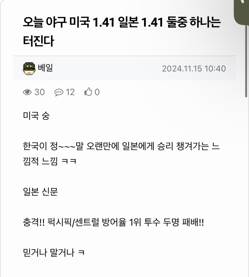 이거 진짜 가는거냐? 작성자 정보 베일쪽지보내기 자기소개 닉네임으로 검색쪽지보내기 자기소개 닉네임으로 검색 작성 작성일 2024.11.15 20:58 컨텐츠 정보 131 조회 16 댓글 0 추천 목록 본문 오히려 경험 없는 젊은 선수 구성이 분위기 타면 그것만큼 무서운 거 없지 신바람 야구 ㄷㄷ 0 추천 관련자료 이전 실시간 한국 2배주네 이거 물어볼만할 거 같음?? 작성일 2024.11.15 20:59 다음 다카하시ㅡ발럼 작성일 2024.11.15 20:55 댓글 16 리을님의 댓글 리을쪽지보내기 자기소개 닉네임으로 검색쪽지보내기 자기소개 닉네임으로 검색 작성일 2024.11.15 20:58 헐 헐 켄트퍼플님의 댓글 켄트퍼플쪽지보내기 자기소개 닉네임으로 검색쪽지보내기 자기소개 닉네임으로 검색 작성일 2024.11.15 21:13 ㄷㄷ ㄷㄷ 달먹님의 댓글 달먹쪽지보내기 자기소개 닉네임으로 검색쪽지보내기 자기소개 닉네임으로 검색 작성일 2024.11.15 21:43 놉 놉 토신토존님의 댓글 토신토존쪽지보내기 자기소개 닉네임으로 검색쪽지보내기 자기소개 닉네임으로 검색 작성일 2024.11.15 21:46 ㄷㄷㄷ ㄷㄷㄷ 먼짝귀1111님의 댓글 먼짝귀1111쪽지보내기 자기소개 닉네임으로 검색쪽지보내기 자기소개 닉네임으로 검색 작성일 2024.11.15 22:29 ㄷㄷ ㄷㄷ 쫄병님의 댓글 쫄병쪽지보내기 자기소개 닉네임으로 검색쪽지보내기 자기소개 닉네임으로 검색 작성일 2024.11.16 00:35 ㄷㄷ ㄷㄷ 알바양님의 댓글 알바양쪽지보내기 자기소개 닉네임으로 검색쪽지보내기 자기소개 닉네임으로 검색 작성일 2024.11.16 02:03 ㄷㄷ ㄷㄷ 기커조님의 댓글 기커조쪽지보내기 자기소개 닉네임으로 검색쪽지보내기 자기소개 닉네임으로 검색 작성일 2024.11.16 04:33 ㅅㅅㅅㅅㅅㅅㅅㅅㅅㅅㅅ ㅅㅅㅅㅅㅅㅅㅅㅅㅅㅅㅅ 스테판커쇼님의 댓글 스테판커쇼쪽지보내기 자기소개 닉네임으로 검색쪽지보내기 자기소개 닉네임으로 검색 작성일 2024.11.16 08:44 ㄷㄷ ㄷㄷ 카드게임님의 댓글 카드게임쪽지보내기 자기소개 닉네임으로 검색쪽지보내기 자기소개 닉네임으로 검색 작성일 2024.11.16 21:39 ㅇㅎ ㅇㅎ 발암기억님의 댓글 발암기억쪽지보내기 자기소개 닉네임으로 검색쪽지보내기 자기소개 닉네임으로 검색 작성일 2024.11.16 22:28 ㄷ ㄷ 근본으로님의 댓글 근본으로쪽지보내기 자기소개 닉네임으로 검색쪽지보내기 자기소개 닉네임으로 검색 작성일 2024.11.17 15:26 ㄷ ㄷ 후지에시호님의 댓글 후지에시호쪽지보내기 자기소개 닉네임으로 검색쪽지보내기 자기소개 닉네임으로 검색 작성일 2024.11.17 20:57 ㄷㄷ ㄷㄷ 마당발님의 댓글 마당발쪽지보내기 자기소개 닉네임으로 검색쪽지보내기 자기소개 닉네임으로 검색 작성일 2024.11.17 23:19 ㄷㄷ ㄷㄷ greenday님의 댓글 greenday쪽지보내기 자기소개 닉네임으로 검색쪽지보내기 자기소개 닉네임으로 검색 작성일 2024.11.18 00:32 ㄷㄷ ㄷㄷ 맞추고싶어님의 댓글 맞추고싶어쪽지보내기 자기소개 닉네임으로 검색쪽지보내기 자기소개 닉네임으로 검색 작성일 2024.11.18 19:21 ㄷㄷ ㄷㄷ 로그인한 회원만 댓글 등록이 가능합니다. 목록