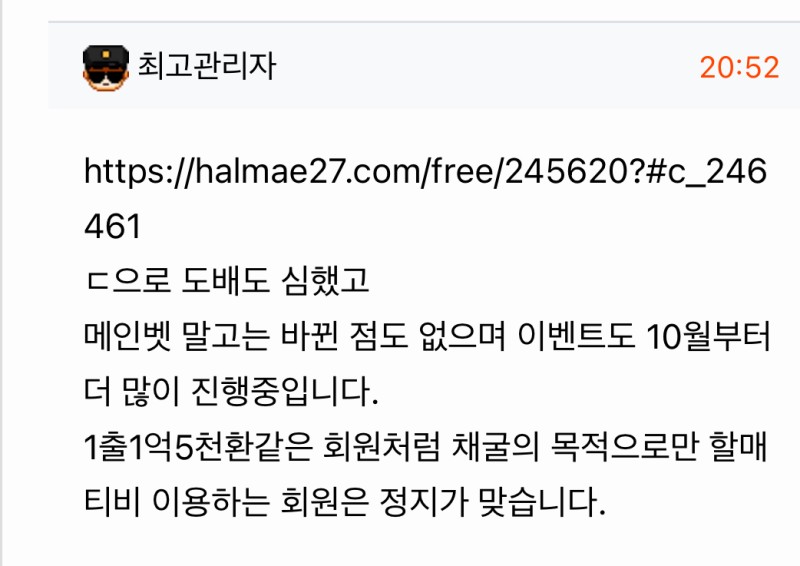 달먹님의 댓글 달먹쪽지보내기 자기소개 닉네임으로 검색쪽지보내기 자기소개 닉네임으로 검색 작성일 2024.11.18 21:00 마쟈 얘는 같은 댓노를 해도 걔중에 제일 성의없음 ㅋㅋ 근데 할티회원도 아냐?! Out!!!! 마쟈 얘는 같은 댓노를 해도 걔중에 제일 성의없음 ㅋㅋ 근데 할티회원도 아냐?! Out!!!!