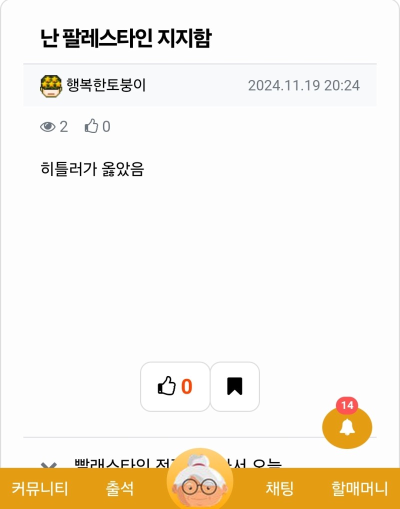 관리자님 행붕이 신고합니다 작성자 정보 대수성쪽지보내기 자기소개 닉네임으로 검색쪽지보내기 자기소개 닉네임으로 검색 작성 작성일 2024.11.19 20:25 컨텐츠 정보 168 조회 8 댓글 0 추천 목록 본문 나치충 ㅁㅈㅎ 0 추천 관련자료 이전 she is a monster beautiful monster 작성일 2024.11.19 20:28 다음 난 팔레스타인 지지함 작성일 2024.11.19 20:24 댓글 8 행복한토붕이님의 댓글 행복한토붕이쪽지보내기 자기소개 닉네임으로 검색쪽지보내기 자기소개 닉네임으로 검색 작성일 2024.11.19 20:27 일베충아 ㅡㅡ 일베충아 ㅡㅡ 대수성님의 댓글의 댓글 대수성쪽지보내기 자기소개 닉네임으로 검색쪽지보내기 자기소개 닉네임으로 검색 작성일 2024.11.19 20:27 나치충아 ㅡㅡ 나치충아 ㅡㅡ 쫄병님의 댓글 쫄병쪽지보내기 자기소개 닉네임으로 검색쪽지보내기 자기소개 닉네임으로 검색 작성일 2024.11.19 20:29 이건아닌데진짜 이건아닌데진짜 달먹님의 댓글 달먹쪽지보내기 자기소개 닉네임으로 검색쪽지보내기 자기소개 닉네임으로 검색 작성일 2024.11.19 20:34 나치충은 밴이지 나치충은 밴이지 리을님의 댓글 리을쪽지보내기 자기소개 닉네임으로 검색쪽지보내기 자기소개 닉네임으로 검색 작성일 2024.11.19 21:12 쉽지않네 쉽지않네 인생은도박이다님의 댓글 인생은도박이다쪽지보내기 자기소개 닉네임으로 검색쪽지보내기 자기소개 닉네임으로 검색 작성일 2024.11.19 21:40 흠좀무 흠좀무 근본으로님의 댓글 근본으로쪽지보내기 자기소개 닉네임으로 검색쪽지보내기 자기소개 닉네임으로 검색 작성일 2024.11.19 23:38 신고완 신고완 두두님의 댓글 두두쪽지보내기 자기소개 닉네임으로 검색쪽지보내기 자기소개 닉네임으로 검색 작성일 2024.11.20 08:52 저도신고 저도신고 로그인한 회원만 댓글 등록이 가능합니다. 목록