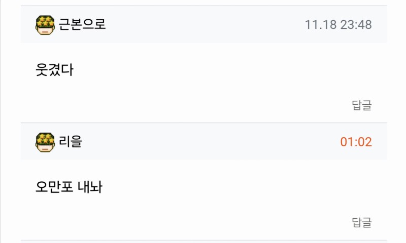 달먹님의 댓글 달먹쪽지보내기 자기소개 닉네임으로 검색쪽지보내기 자기소개 닉네임으로 검색 작성일 2024.11.19 20:30 근본으로 말문도 트이게한 체관 ㄷㄷ 근본으로 말문도 트이게한 체관 ㄷㄷ