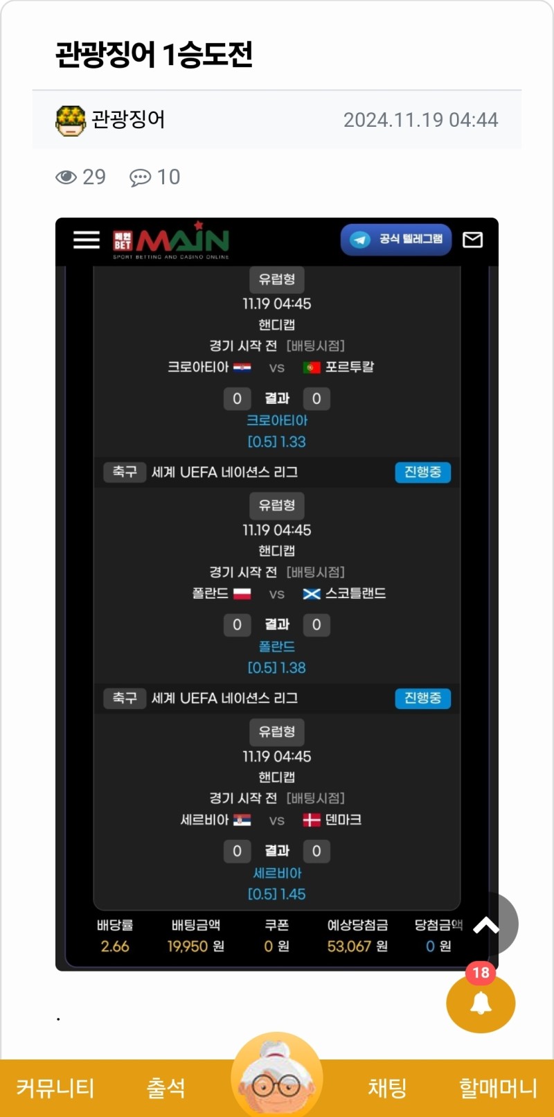 뽀넬이 메인벳은 언제 가입했대 작성자 정보 대수성쪽지보내기 자기소개 닉네임으로 검색쪽지보내기 자기소개 닉네임으로 검색 작성 작성일 2024.11.19 21:59 컨텐츠 정보 191 조회 7 댓글 0 추천 목록 본문 이벤은 꾸준히 참여하는구나 0 추천 관련자료 이전 할매머니 1페중 1명만완료 ㄷㄷ 작성일 2024.11.19 21:59 다음 야구 축구 일본 신앙이네 작성일 2024.11.19 21:52 댓글 7 쫄병님의 댓글 쫄병쪽지보내기 자기소개 닉네임으로 검색쪽지보내기 자기소개 닉네임으로 검색 작성일 2024.11.19 22:00 메인갑한지쪼매댐 ㅋㅋ 메인갑한지쪼매댐 ㅋㅋ 딸배님의 댓글 딸배쪽지보내기 자기소개 닉네임으로 검색쪽지보내기 자기소개 닉네임으로 검색 작성일 2024.11.19 22:04 그외중에 사망이네 그외중에 사망이네 리을님의 댓글의 댓글 리을쪽지보내기 자기소개 닉네임으로 검색쪽지보내기 자기소개 닉네임으로 검색 작성일 2024.11.19 22:13 이게 핵심이노 ㅋㅋ 이게 핵심이노 ㅋㅋ 카드게임님의 댓글의 댓글 카드게임쪽지보내기 자기소개 닉네임으로 검색쪽지보내기 자기소개 닉네임으로 검색 작성일 2024.11.19 22:42 어허 그런소리 나빠요 어허 그런소리 나빠요 후지에시호님의 댓글 후지에시호쪽지보내기 자기소개 닉네임으로 검색쪽지보내기 자기소개 닉네임으로 검색 작성일 2024.11.19 22:39 그와중에 50원덜건거는 뭐지?ㅋㅋ 그와중에 50원덜건거는 뭐지?ㅋㅋ 근본으로님의 댓글 근본으로쪽지보내기 자기소개 닉네임으로 검색쪽지보내기 자기소개 닉네임으로 검색 작성일 2024.11.19 23:38 몰랐네 몰랐네 두두님의 댓글 두두쪽지보내기 자기소개 닉네임으로 검색쪽지보내기 자기소개 닉네임으로 검색 작성일 2024.11.20 08:42 ㄹㅇ궁금 ㄹㅇ궁금 로그인한 회원만 댓글 등록이 가능합니다. 목록